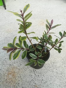 Variegated Hebe – £6.50 Lovely variegate foliage and beautiful purple flowers. Great for attracting wildlife.